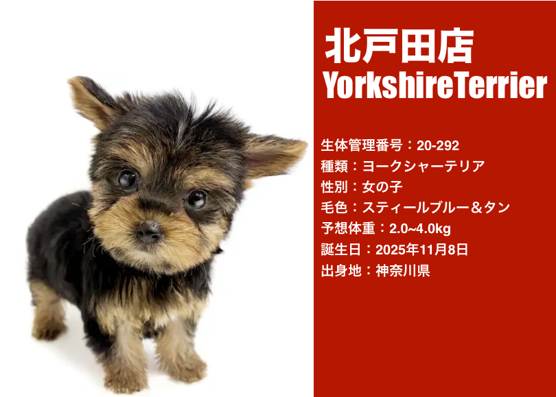マルワン北戸田店に煌めくスティールブルー&タンの輝きを纏った、ヨークシャーテリアの女の子が入店いたしました!