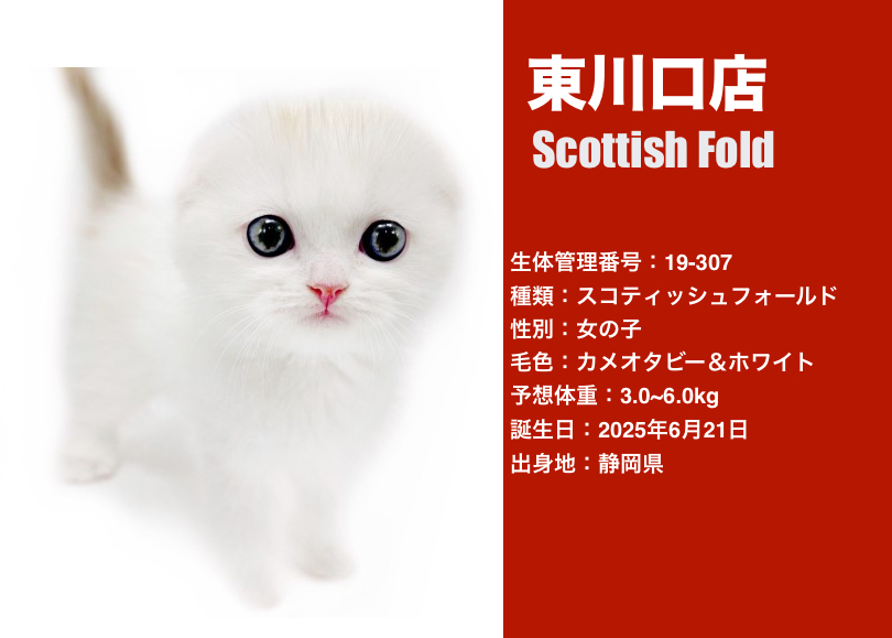 2025年12月25日現在ペットショップマルワン全店に在店中のスコティッシュフォールドちゃんをご紹介します!