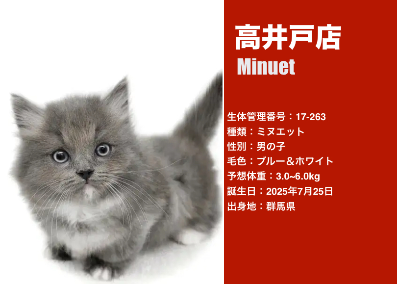 2025年11月27日現在ペットショップマルワン全店に在店中のマンチカン・ミヌエットちゃんをご紹介します!