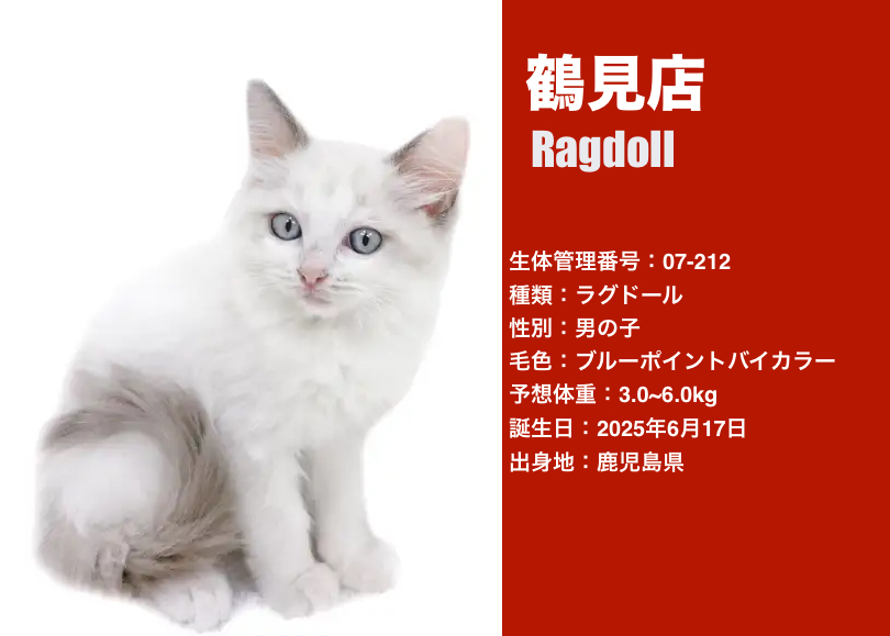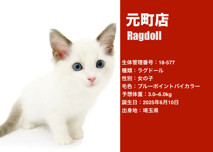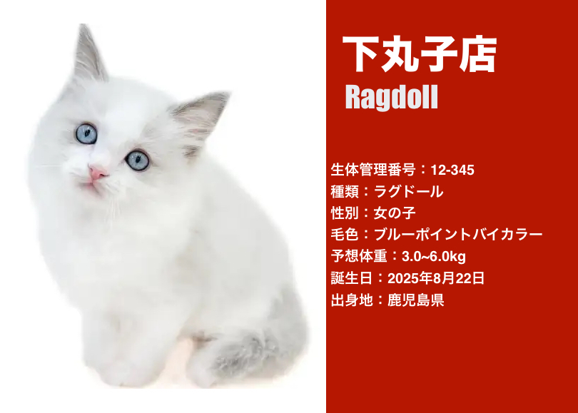 2025年11月13日現在ペットショップマルワン全店に在店中のラグドールをご紹介します!