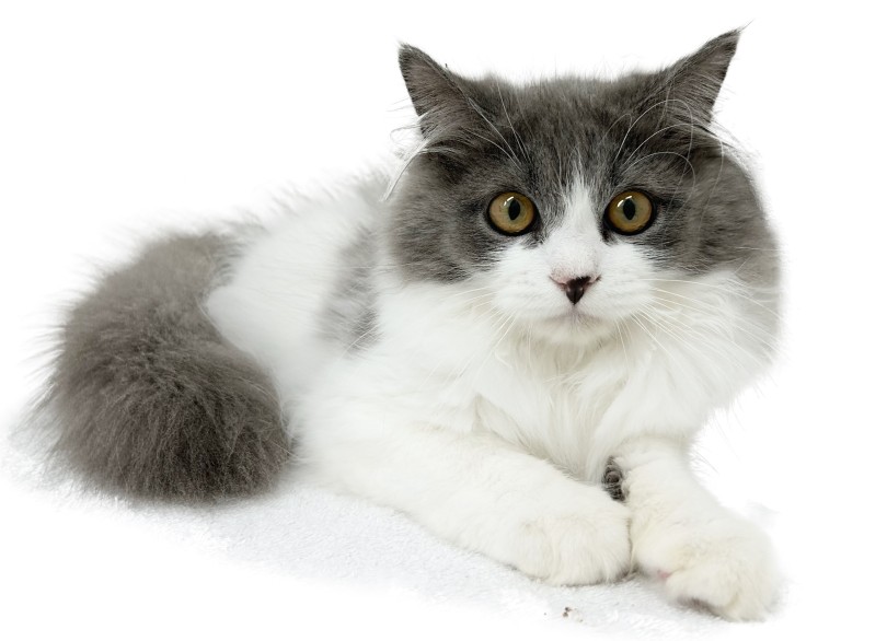 また、豊かな毛量は羽毛のように柔らかく、ブルーとホワイトの毛色のコントラストの美しさは一線を画します。