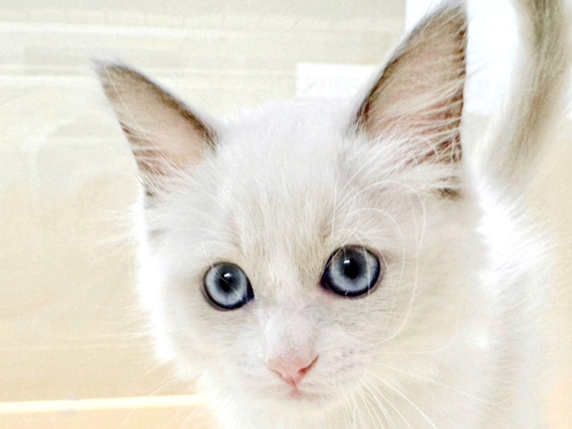 丸みを帯びた愛らしい輪郭と透き通るブルーの瞳が特徴のラグドールちゃん!