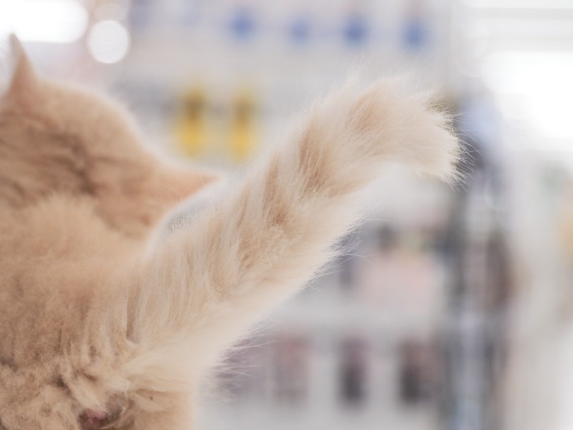 忘れてはならない、長く真っ直ぐにのびるクリームタビー柄の尻尾。