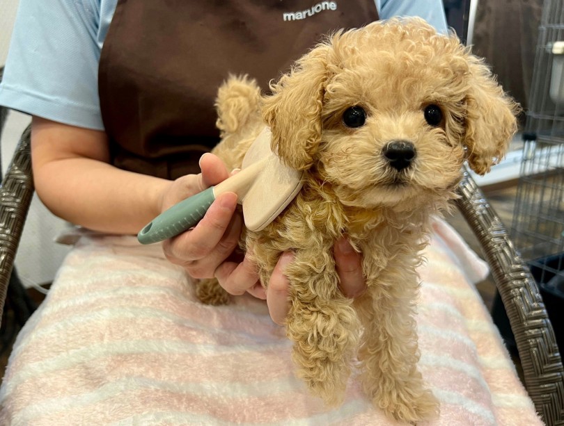 小さいうちから優しく触れる練習をしていくことで、将来トリミングやブラッシングもスムーズにできるように。ご家族みんなで“なでなで”しながら馴らしていく時間もきっと心あたたまるひとときになります♡