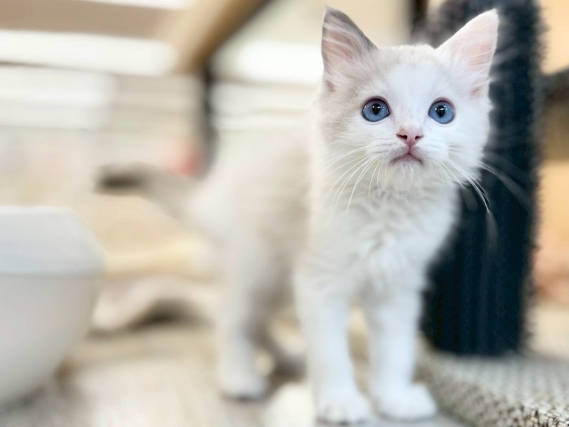 生まれた時は、真っ白で成長と共に発色していく猫種ラグドール。