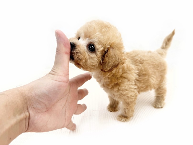 淡いアプリコットカラーのトイプードルの女の子がマルワン下丸子店に仲間入り♪