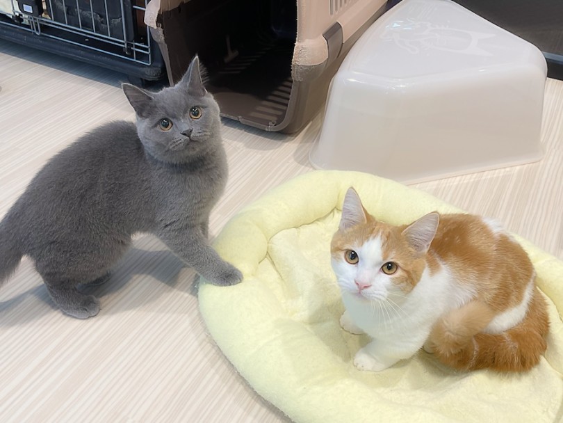 プレイルームデビューしたばかりのブリティッシュちゃまにも優しい先輩にゃんこ!