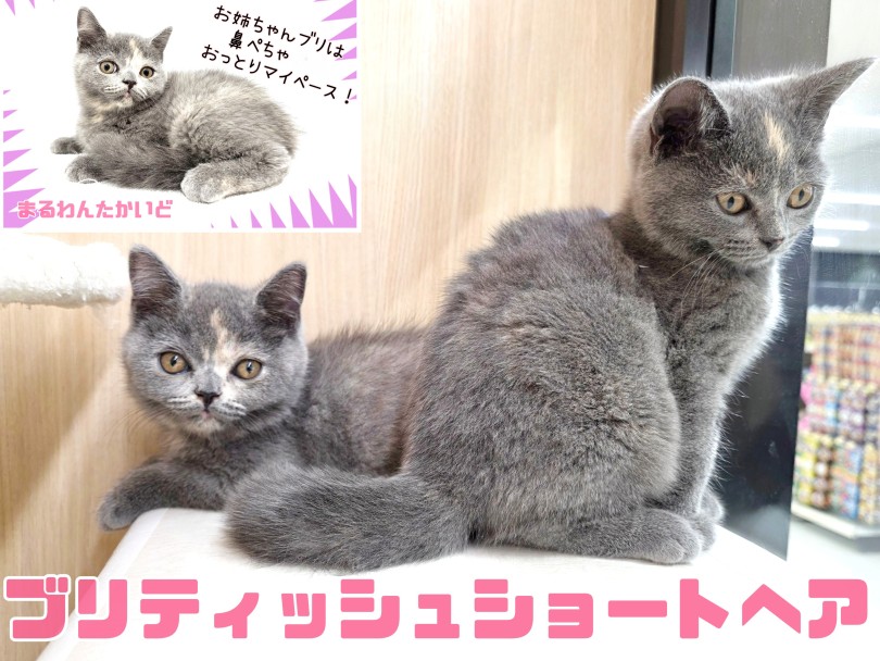 大福のような丸いお顔をもった”ブリテッシュショートヘア”の姉妹が、東京都杉並区の【犬猫専門ペットショップマルワン高井戸店】にやって来ました♪一緒に育って来ただけあって、お店に来てからもとっても仲良し!