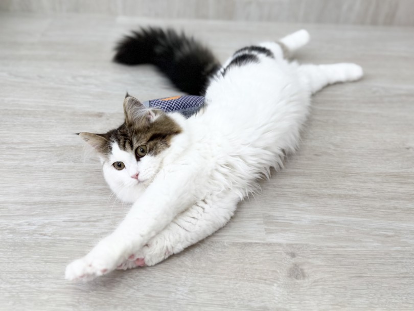 生後6ヶ月が経ち、骨格もがっしりとしてきて、プレイルームにある160cmのキャットタワーも楽々と登り降りできる筋肉も付いてきました。