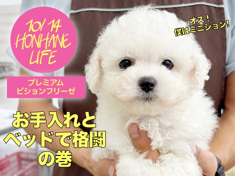 【 ビションフリーゼ 】プレミアムビションちゃんのお手入れとベッドと格闘の巻