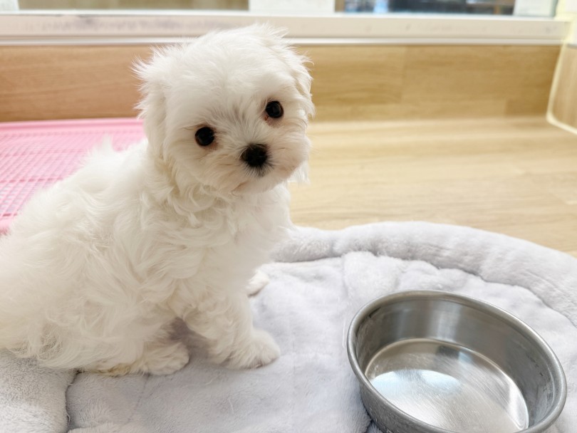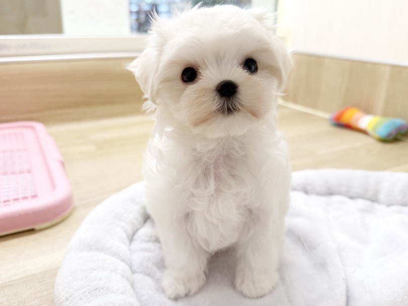埼玉県戸田市にあるペットショップ【マルワンイオンモール北戸田店】に、真っ白な被毛が美しい『マルチーズ』の女の子が新しく仲間入りしました!