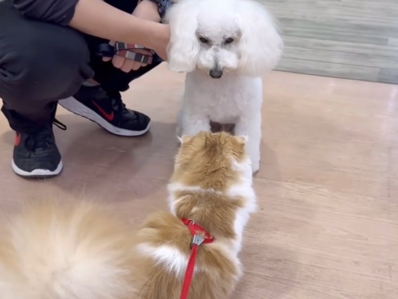 一緒にお店の外で遊び始めた猫ちゃんはもちろん、初めましてのワンちゃんとも仲良くなれてしまったのです!