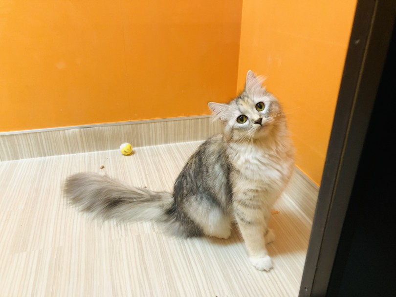 今回紹介するのはとっても甘えん坊で、シルバーパッチドタビーの毛並みがまぶしい美猫「サイベリアン」の女の子です!