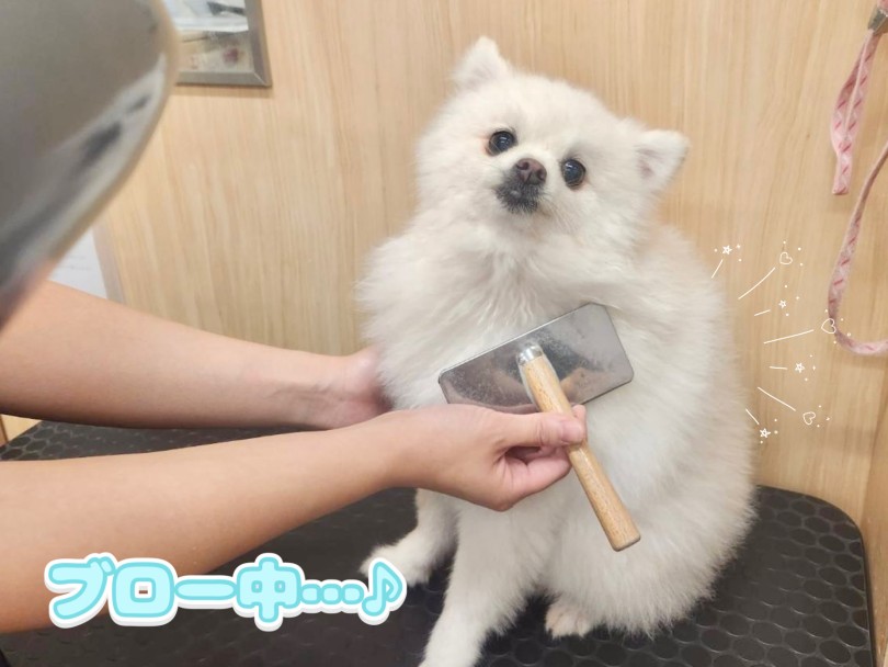 乾かし中のうみちゃんのご様子です!とっても落ち着いてドライングできていますね♪