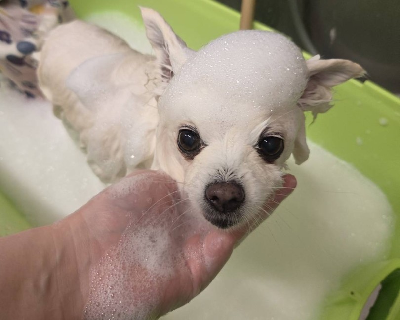 泡立ちも良いので、もこもこのお風呂でうみちゃんも気持ちよさそうにしていました♪