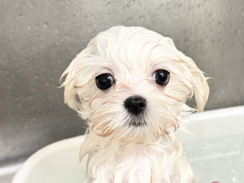 将来トリミングが必要なおマルちゃんですが、お家でもシャンプーをやらせてくれるお利口さんに成長中です♪♪