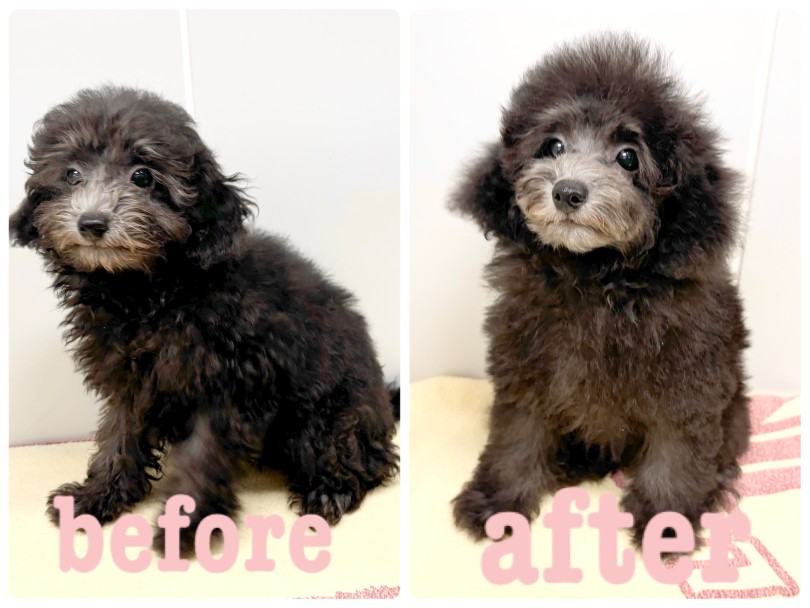 お店に来てから勉強頑張っているトイプーちゃんの成果はお手入れ習得・・・ブラッシングや爪切り、耳掃除もとっても上手に行えます!
