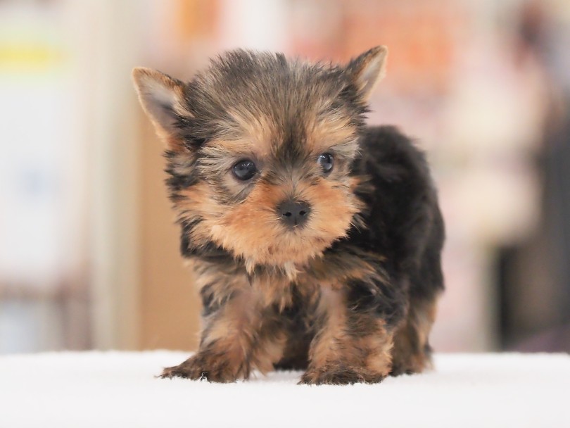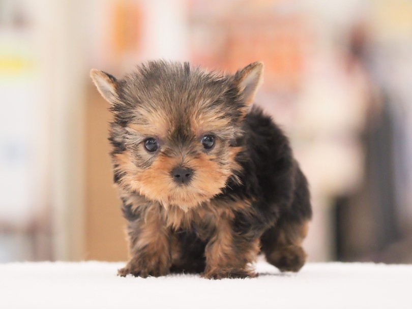 お店に来たばかりのヨーキーちゃんはまだ環境の変化に少しだけ戸惑っている様子。