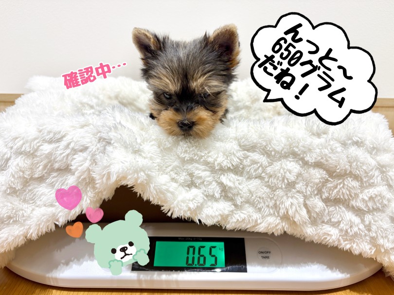 小柄なヨーキーちゃんの体重は11月4日現在で650g !まるで羽のようにふんわり軽いんです♡