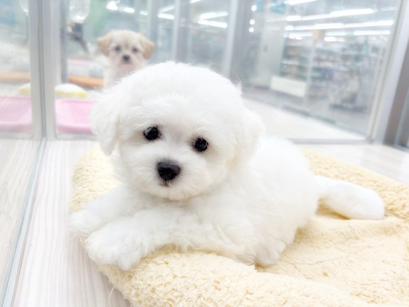マルワン本羽田店に在籍するパパとママの体重が2kg台 という驚異的なサイズ感の両親から誕生したビションフリーゼの男の子。(通称ミニションちゃん)