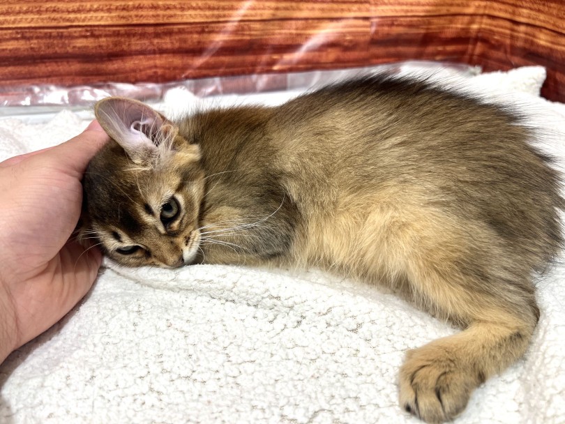 △手を枕にしてリラックス♡・チャンピオンの血を継ぐ、正統派血統のソマリ