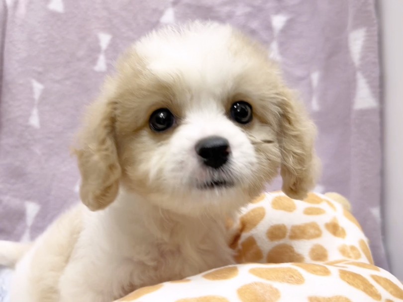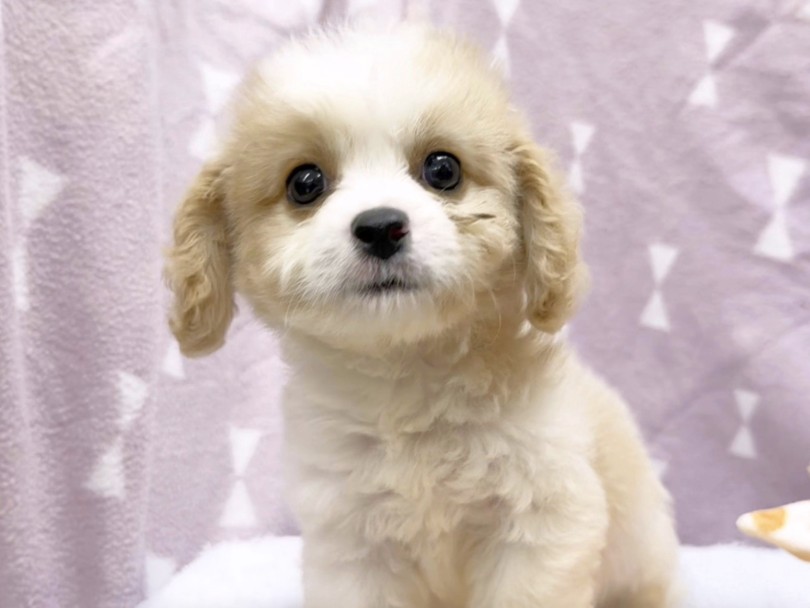 この子を見た瞬間、まず惹かれるのは“お顔の可愛さ”!キャバリア譲りの大きなまんまるの瞳が、ウルウルと輝きながら見つめてくるその表情は、まさに天使そのものです♡
