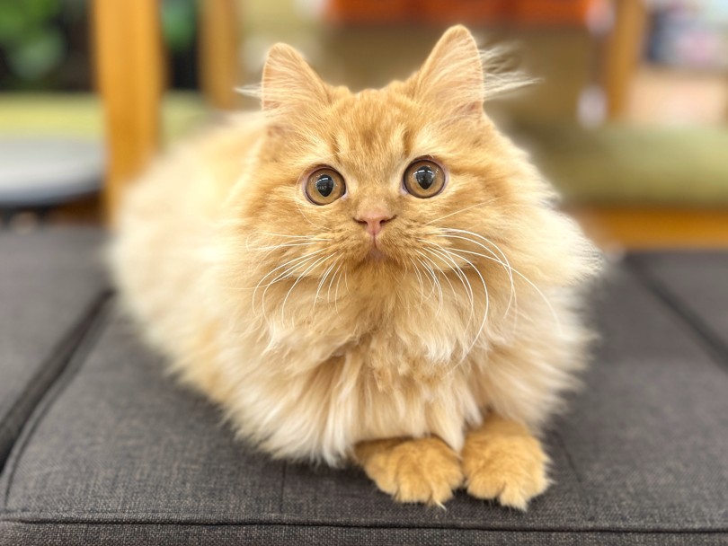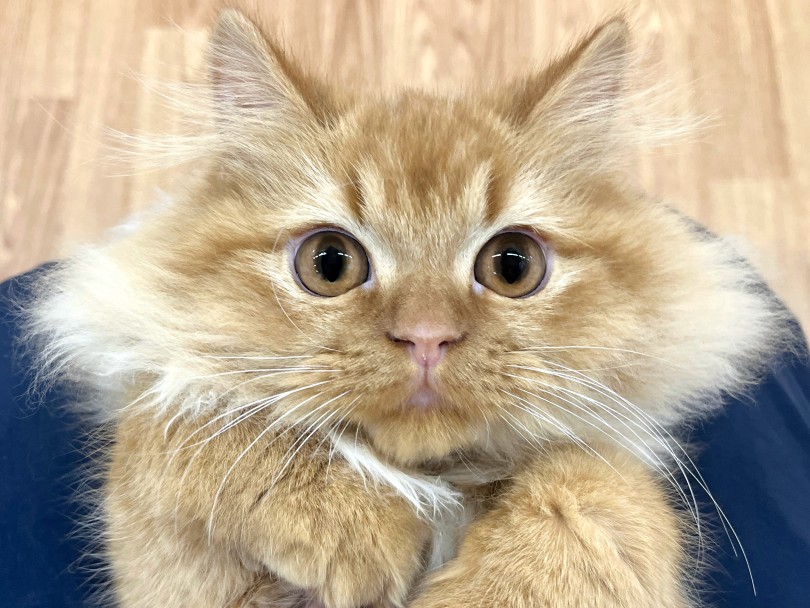入店当時と比べ、被毛が伸びわたあめのように柔らかい爆毛猫ちゃんになりました♪
