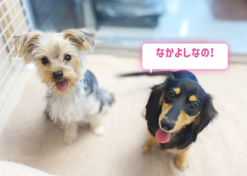 ワクチンプログラムが終わって、ヨーキーのよーちゃんと一緒のお部屋で過ごしているの♪