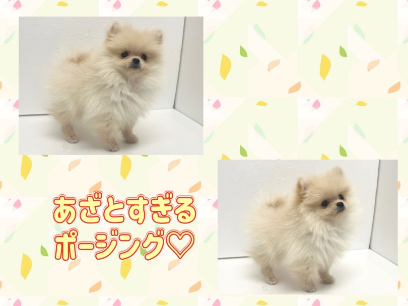 クリームの優しい色味はポメちゃんのまだ幼く可愛らしいお顔の印象にピッタリですね♪