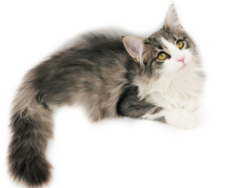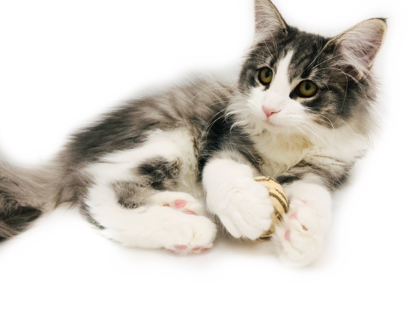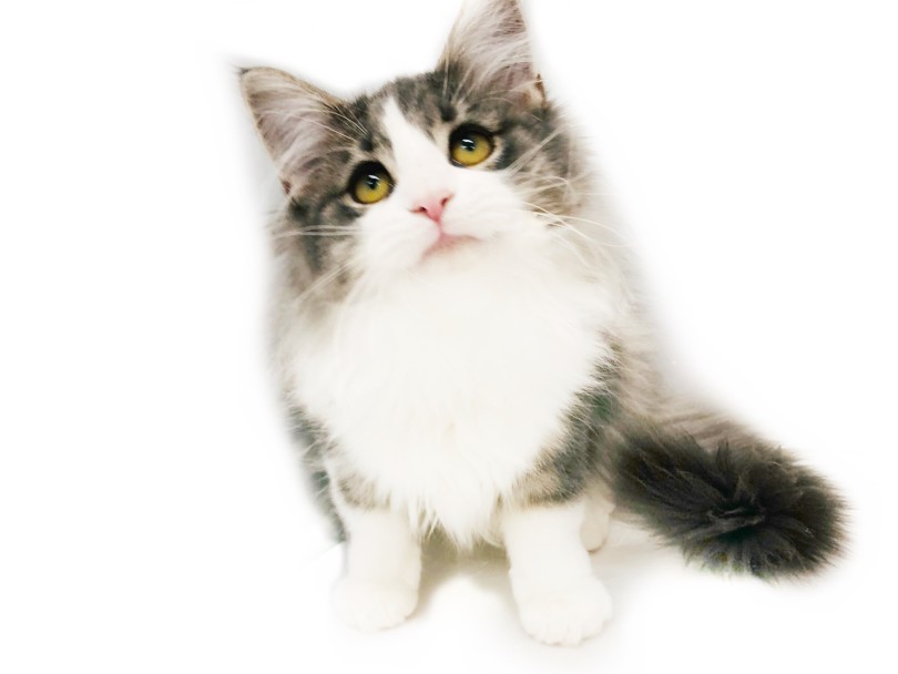 今回、ご紹介するのは生後4ヶ月を迎えた、ブルータビー&ホワイトカラーが美しい『ノルウェージャンフォレストキャット』の女の子♡