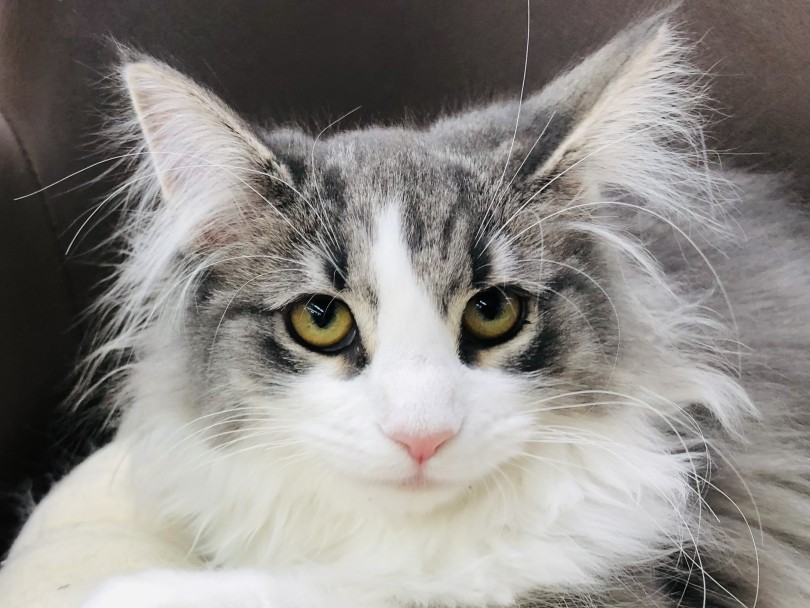 ノルちゃんはノルウェージャンフォレストキャット特有の長毛猫で、穏やかでありながら、遊ぶ時には活発に!