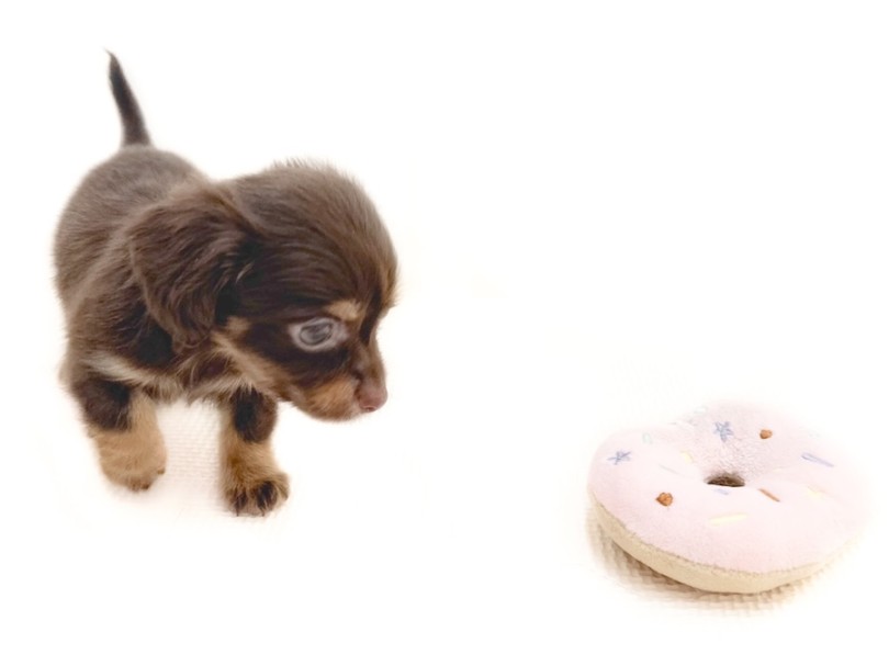こぼれ落ちそうな透明感のある大きな瞳に一瞬で心を掴まれるチワワ×ミニチュアダックスフントのMIX犬。チワックスの男の子が新しく下丸子店に仲間入りしました!
