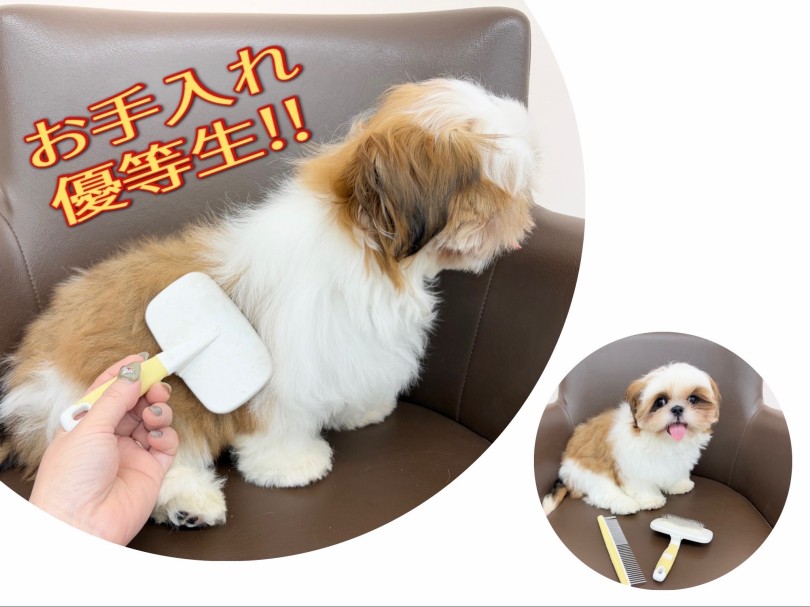 この美しい毛艶をキープするためには、毎日のブラッシングがとっても大切!!お手入れが苦手なわんちゃんも多い中で、シーズーちゃんはリラックスしながら身を任せてくれる『お手入れ優等生』なんです(๑˃̵ᴗ˂̵)