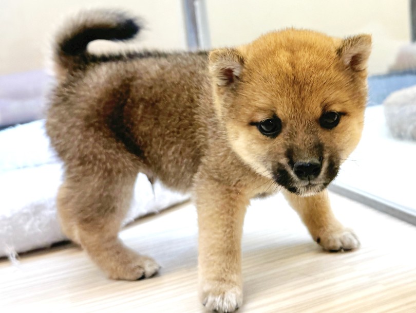 この子のお顔は、キリッとした豆柴らしさと、子犬らしい幼さが絶妙に混ざった“胸キュン顔”。黒目がちのつぶらな瞳で見つめられると、そのまま連れて帰りたくなる可愛さです。