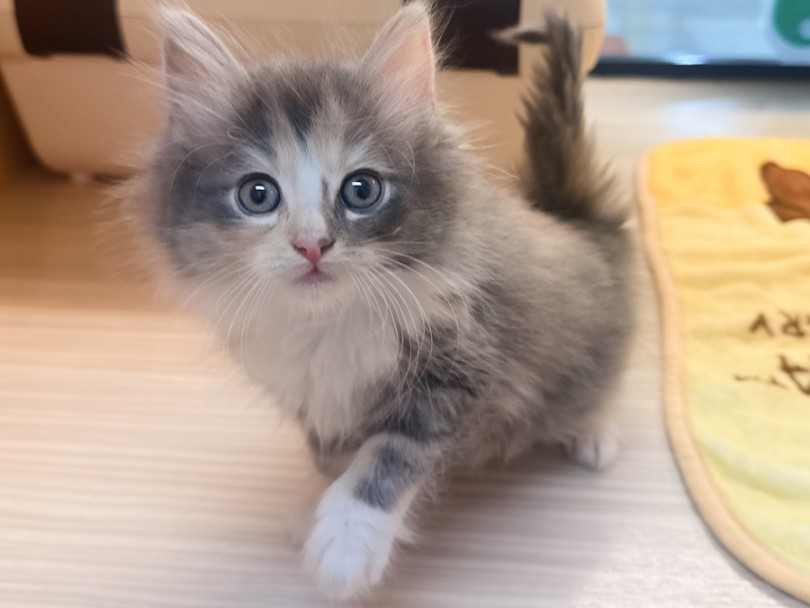 ブルーパッチドタビー&ホワイトの美しい被毛を纏った究極の美少女、【ノルウェージャンフォレストキャット】の女の子をご紹介します♪
