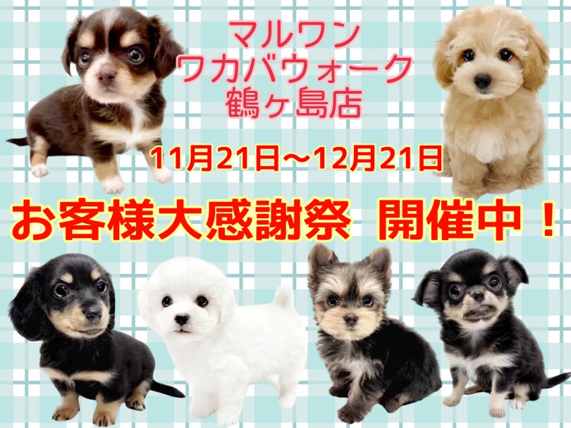 【 お知らせ 】お客様大感謝祭開催中!マルワンワカバウォーク鶴ヶ島店の子犬紹介