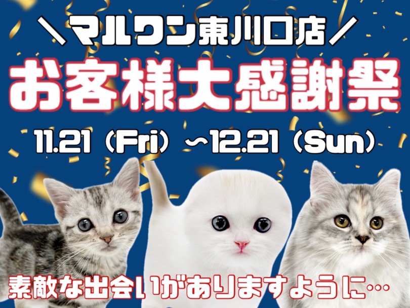 【 お客様大感謝祭 】マルワン東川口店に在店しているネコちゃん達をご紹介!