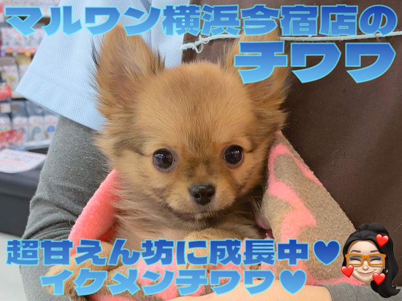 横浜市、藤沢・海老名市からもアクセス良好なペットショップ マルワン横浜 今宿店に在店中のレッド&ホワイトコートをまとったチワワの男の子♡