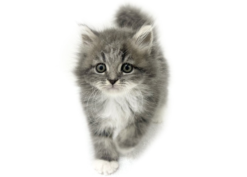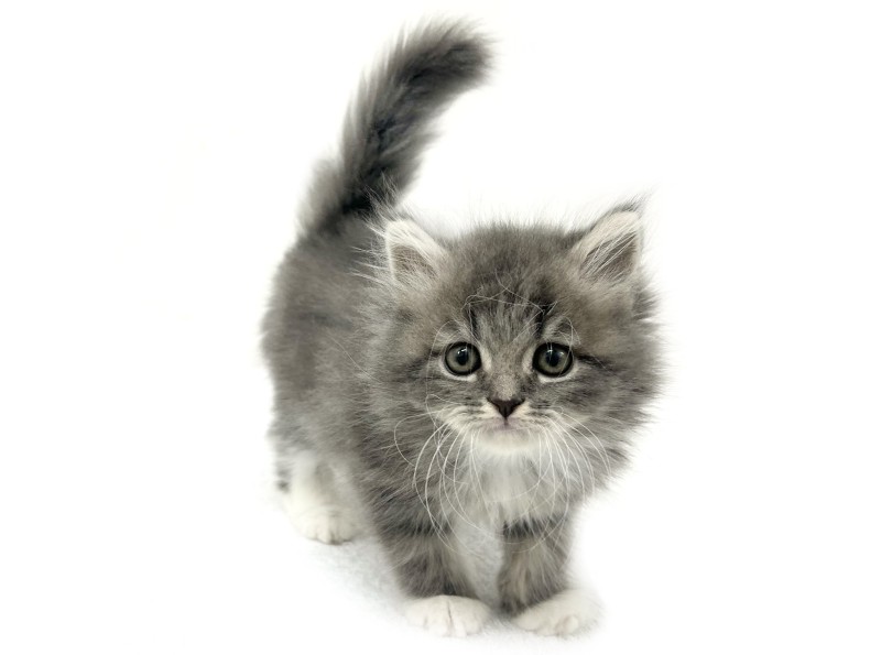 ブルータビー&ホワイトの柔らかな毛色に包まれたその小さな体は、