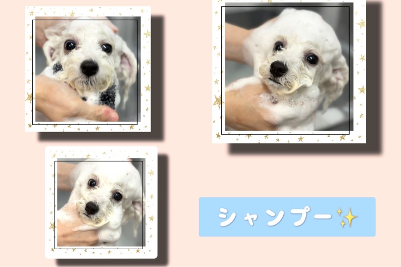ふわもこビションの魅力を引き立てる大切なケアの『シャンプータイム』も覗いてみました。お風呂が苦手な子も多い中、ビションちゃんはすっかり慣れていてとってもお利口さん♪