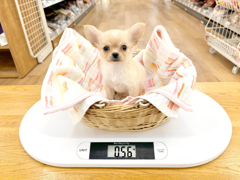 ペッツワン城山店に天使のように可愛いチワワがやってきました!カラーはクリーム&ホワイトで優しい印象を与える女の子!