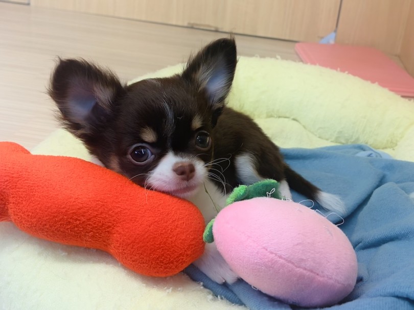お留守番の際には、チワワちゃまが一緒に遊べるおもちゃの準備をしてあげてください!丸いおもちゃがお気に入りで、いつも自分のそばに置きながら過ごしております♡