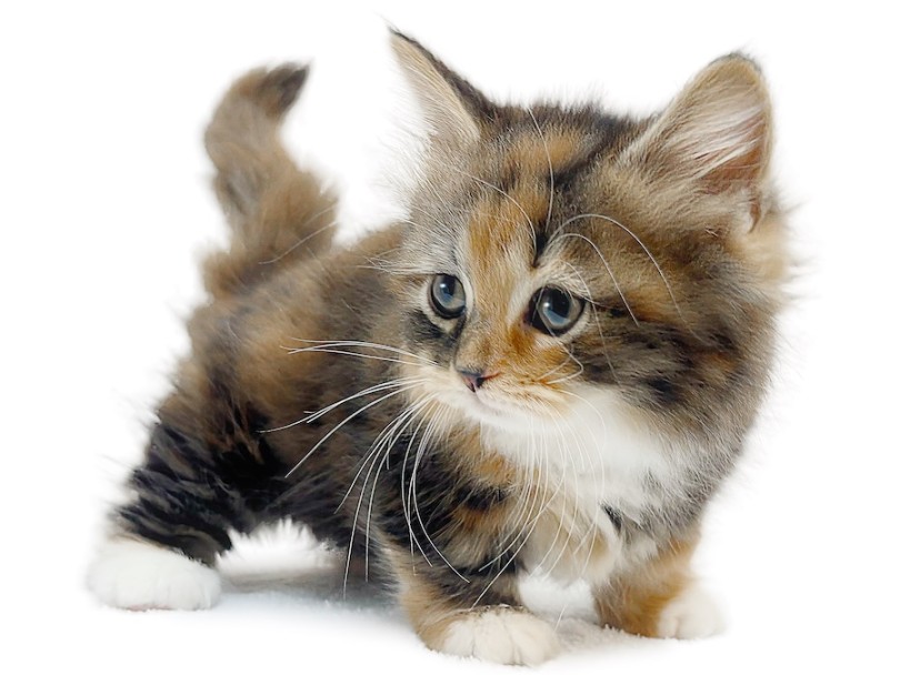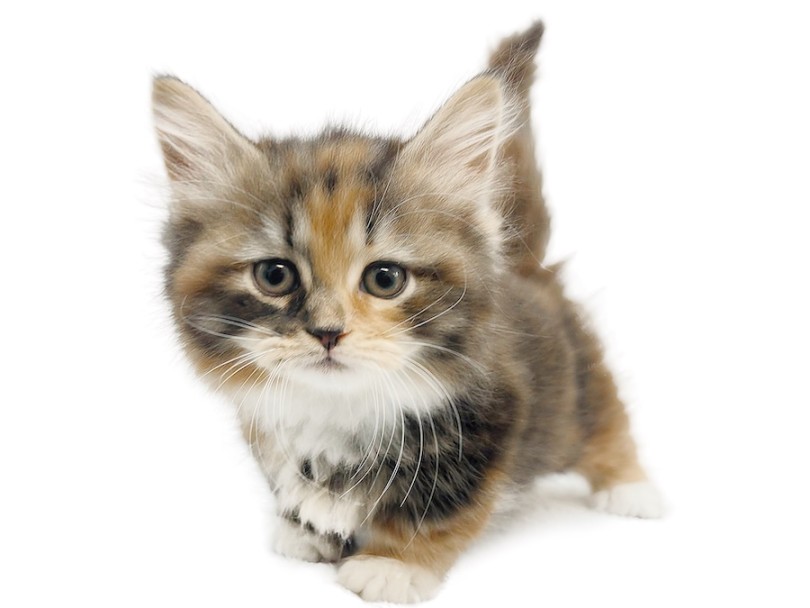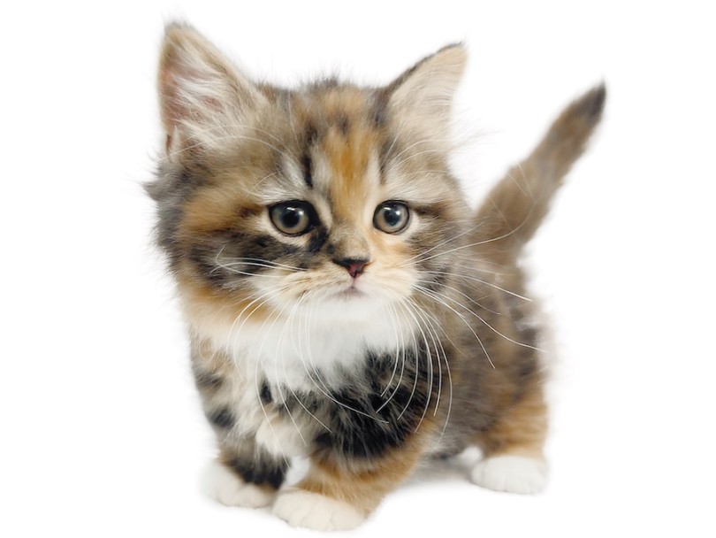 キャリコ(三毛猫)にタビー(縞模様)が入ったブラウンパッチドタビー&ホワイト。