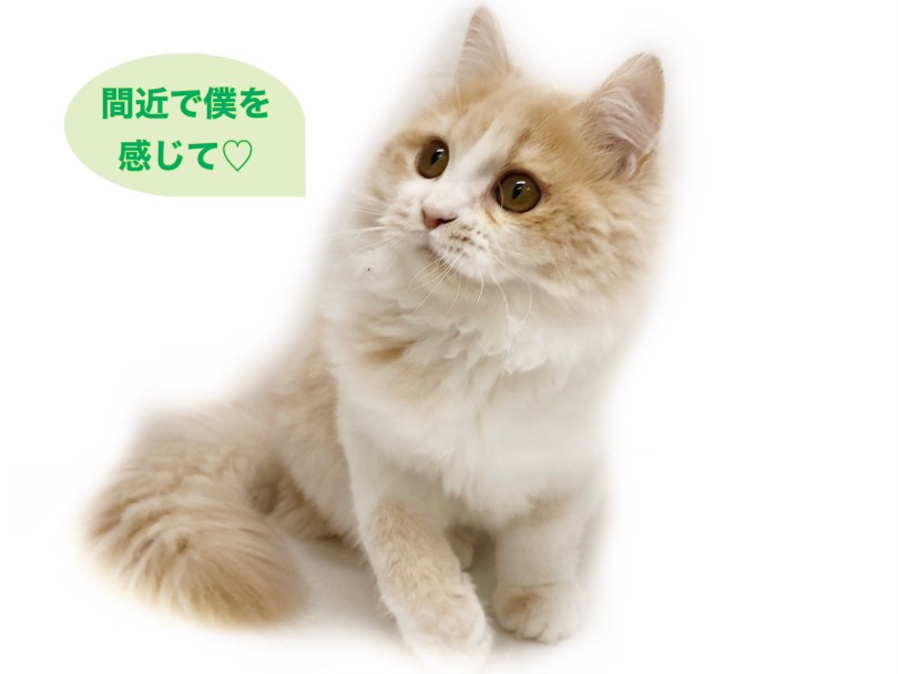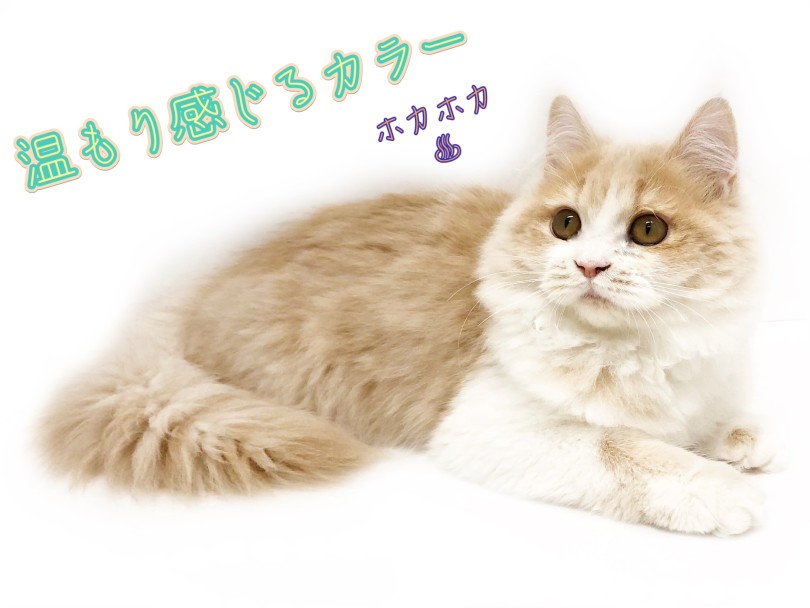 クリームタビー&ホワイトカラーの被毛はどこかぬくもりを感じさせる印象もあり見た目の華やかさだけでなく、穏やかさも兼ね備えている色合いです。