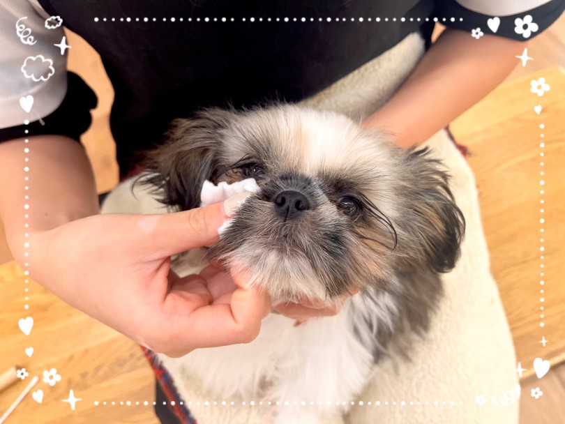 シーズーちゃんも鼻ぺちゃ犬種です!この子は鼻ぺちゃ界でも鼻筋スッキリのお顔立ちですが、目周り・鼻周り・口周りは汚れやすいので、コットンで優しく拭いてあげてください!