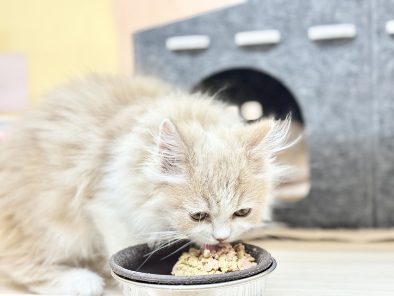 毛艶を良くするために、ミルクとムースをトッピングしてくれると食べ付きも良くなるのさ♡