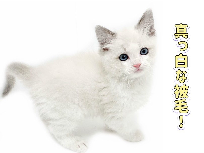 全身真っ白な美しい被毛はラグドールの専売特許!