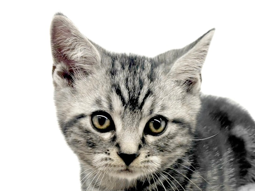毛色は王道人気のシルバータビー!まるでアメリカンショートヘアと間違えてしまいそうな程綺麗なカラーリング!