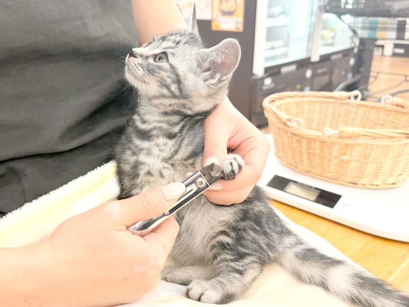 猫は爪切りが苦手な子が多いです。まるで「ありがとう」と言っているかのように顔を見ながら爪切りしていて、落ち着いて爪切りできます。