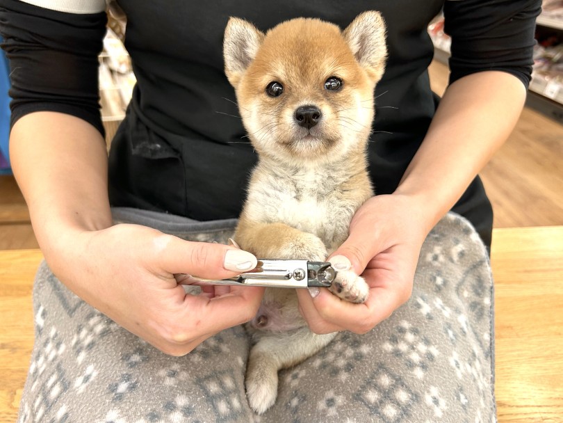 ちょっと緊張している様子の豆柴ちゃん。大きな声を出したり、噛みついたりすることなくお利口さんに行わせてくれました!